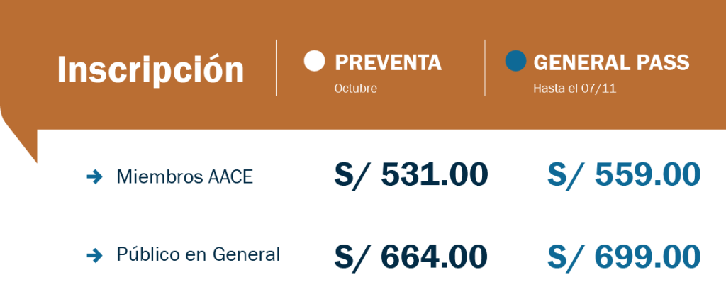 - Almuerzo exclusivo con los conferencistas y expositores y representantes de las empresas auspiciadoras con pago adicional de S/85 por día